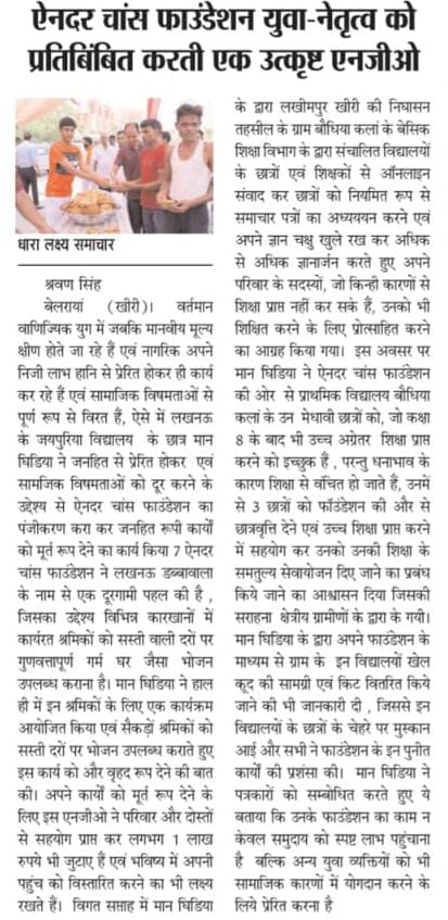 services. Our first initiative, the Lucknow Dabbawala’s project, provides meals and